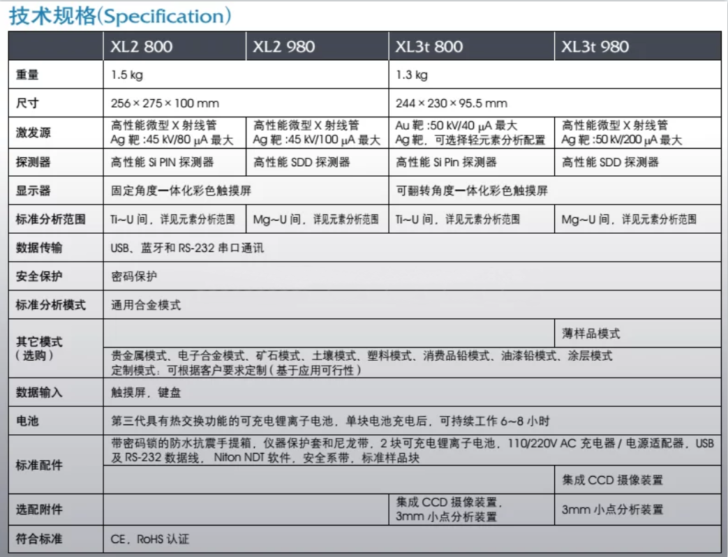 檢測模式:貴金屬、礦石、合金、塑料、土壤、涂層、消費(fèi)品鉛、油漆鉛等
