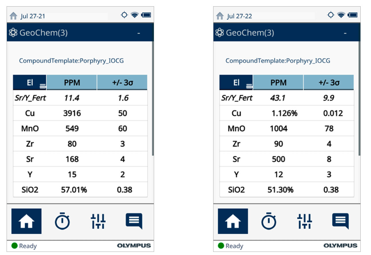 在實驗室中測量的鍶(Sr)、釔(Y)、氧化錳(MnO)、二氧化硅(SiO2)和鋯(Zr)的不同比例組合可用于有效區(qū)分斑巖銅環(huán)境中的成礦特性和妨礙成礦的侵入體。最近,澳大利亞塔斯馬尼亞大學礦床和地球科學中心(CODES)和英國萊斯特大學地理、地質(zhì)和環(huán)境學院都對手持式分析儀在現(xiàn)場檢測制備好和未制備樣品以幫助勘探人員評估斑巖可開采性的能力進行了研究。