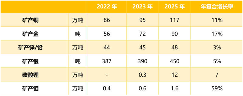 紫金礦業(yè)資源組合相對單一,以銅、金、鋅等有色貴金屬相關(guān)品種為主,近兩年開始布局鋰、鉬、鈷、鎳等新能源新材料關(guān)鍵礦產(chǎn),但尚未形成規(guī)模!