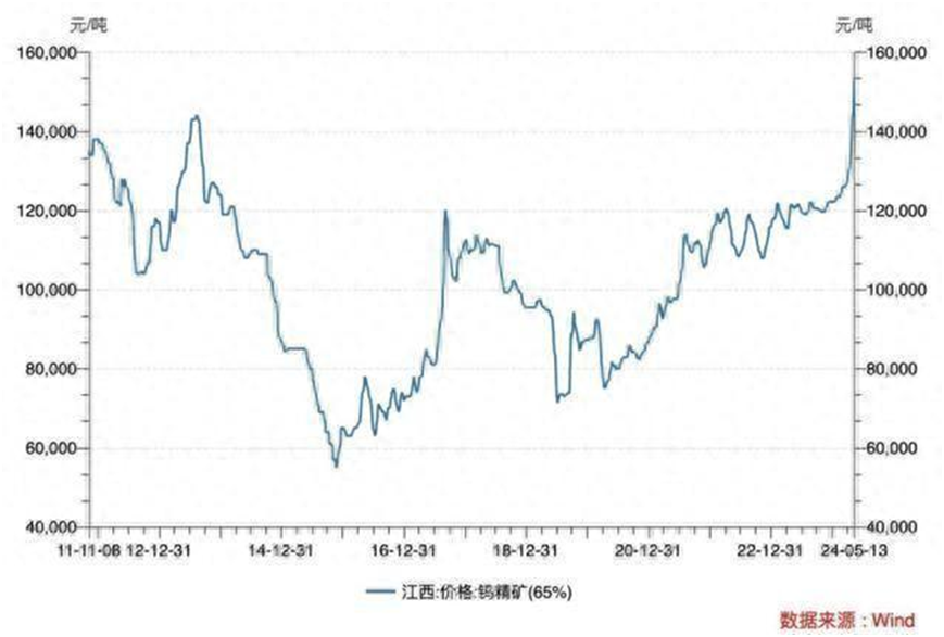 4月以來,被譽(yù)為“工業(yè)牙齒”的金屬鎢價(jià)持續(xù)走高。據(jù)Wind數(shù)據(jù)統(tǒng)計(jì),5月13日,江西地區(qū)65%品位的鎢精礦均價(jià)達(dá)到了15.35萬元/噸,相比4月1日12.65萬元/噸的價(jià)格,上漲了21.34%,較年初上漲25.58%,創(chuàng)下了自2013年以來的新高。