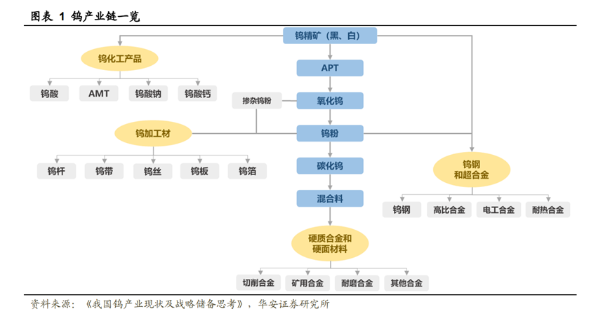 鎢是極其稀缺和不可替代的戰(zhàn)略性資源,具有高熔點(diǎn)、高硬度、高密度、導(dǎo)電性和導(dǎo)熱性良好、膨脹系數(shù)較小等性質(zhì)。鎢制造的硬質(zhì)合金被譽(yù)為“工業(yè)的牙齒”,廣泛應(yīng)用于軍工、航天航空、機(jī)械加工、冶金、鉆井、礦山工具、電子通訊、建筑等領(lǐng)域。而鎢絲是照明、電子、光伏等行業(yè)的關(guān)鍵材料。