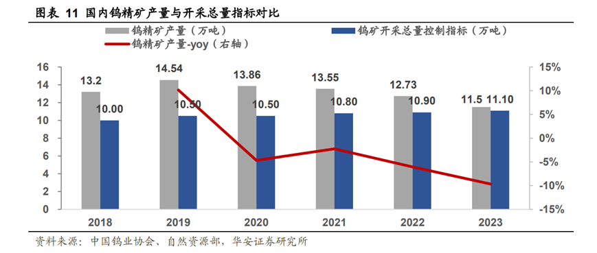 1999年起,我國暫停了鎢礦開采許可證的發(fā)放,2002年我國開始正式對鎢開采總量進(jìn)行控制,有效的抑制住了開采量增長過快的問題,也強(qiáng)化了我國鎢資源的定價(jià)地位。