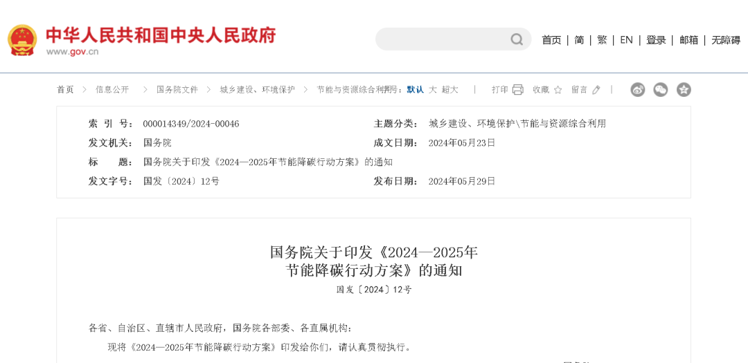 為貫徹落實(shí)黨中央、國務(wù)院決策部署,錨定“十四五”節(jié)能降碳目標(biāo)任務(wù),加大節(jié)能降碳攻堅(jiān)力度,分領(lǐng)域分行業(yè)實(shí)施節(jié)能降碳專項(xiàng)行動(dòng),更好發(fā)揮節(jié)能降碳的經(jīng)濟(jì)效益、社會效益和生態(tài)效益,為實(shí)現(xiàn)碳達(dá)峰碳中和目標(biāo)奠定基礎(chǔ),國家發(fā)展改革委會同有關(guān)方面研究起草了《2024—2025年節(jié)能降碳行動(dòng)方案》,經(jīng)國務(wù)院常務(wù)會議審議通過后,近日由國務(wù)院印發(fā)。