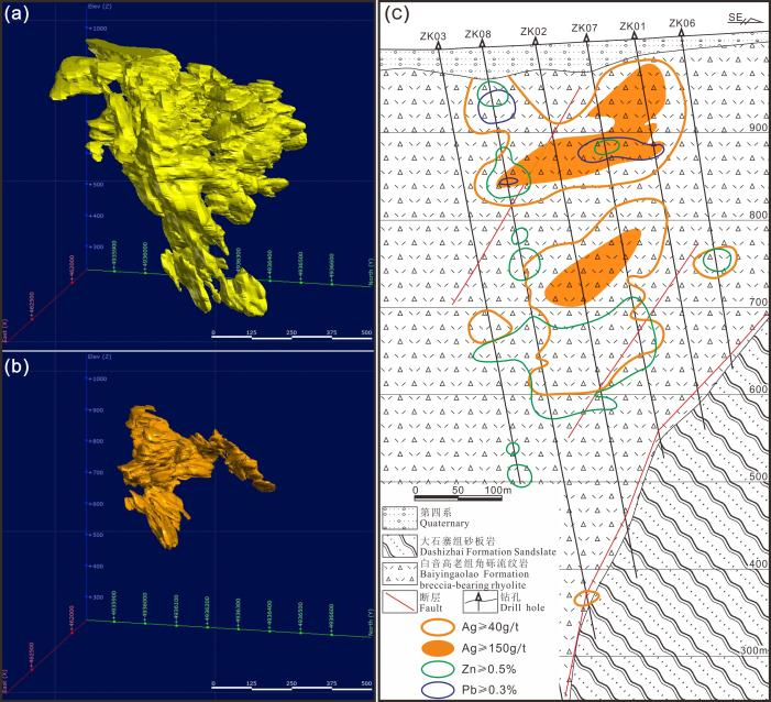 值得注意的是,布敦烏拉銀礦如按照銀工業(yè)品位的2-3倍作為富礦邊界指標進行富礦塊段的圈定(采用150 g/t),可獲得富銀礦石量1600萬噸,平均品位達350 g/t,可與墨西哥高品位銀礦相媲美,展現(xiàn)出極高的經(jīng)濟價值。